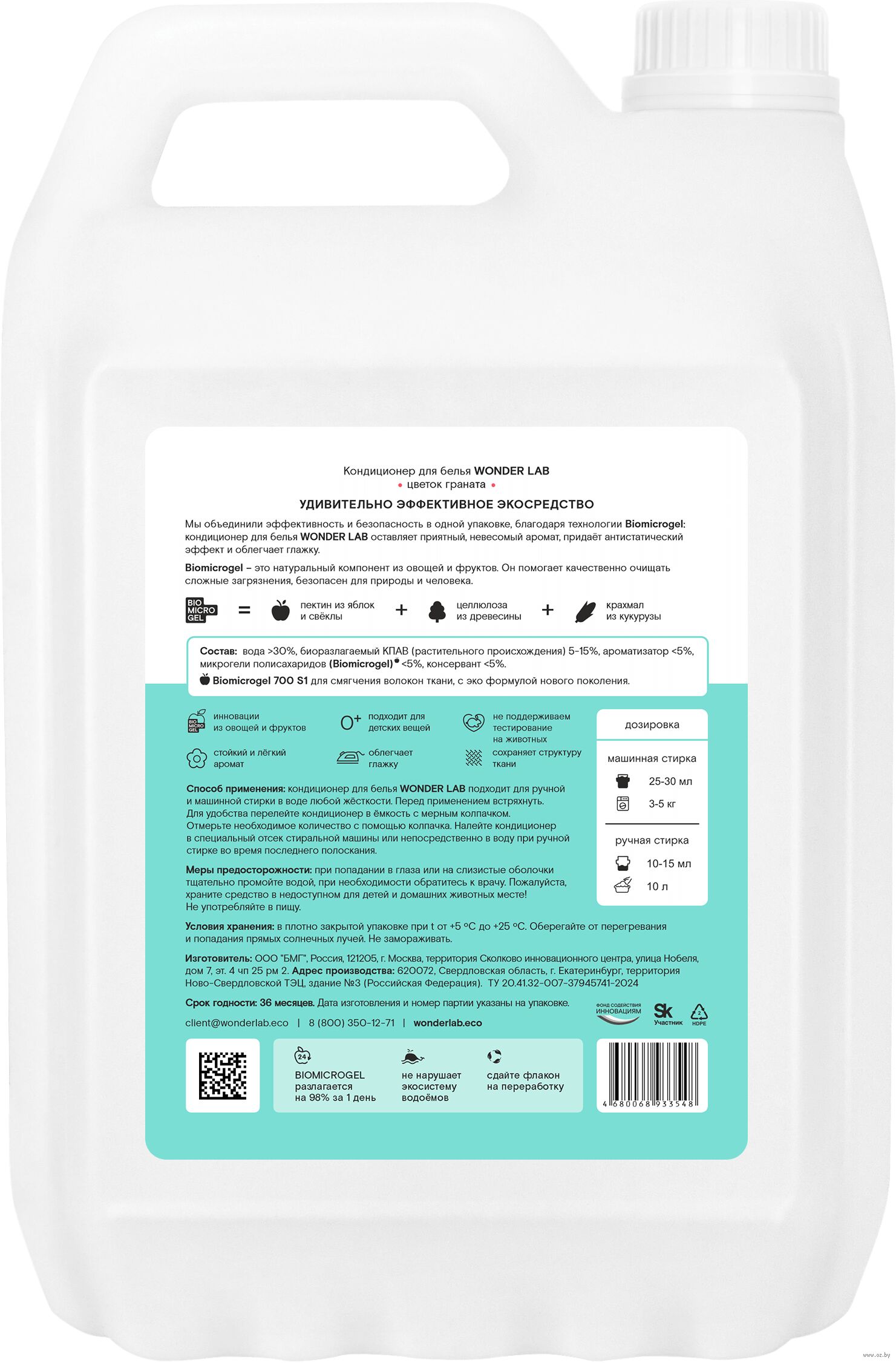 Безопасный и ароматный кондиционер придаёт белью легкий, невесомый аромат граната, без резких отдушек и стойких ароматов.