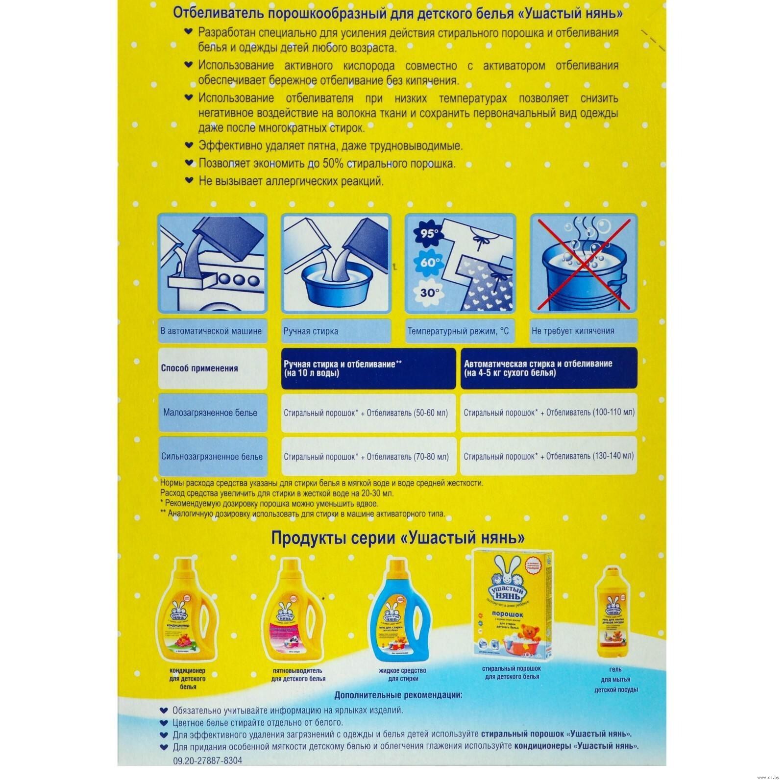 Разработан специально для усиления действия стирального порошка и отбеливания одежды детей любого возраста, в том числе новорожденных.
