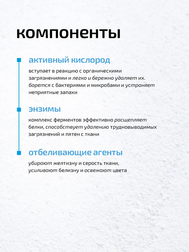 | Дополнительные свойства | Без хлора, кислородный |