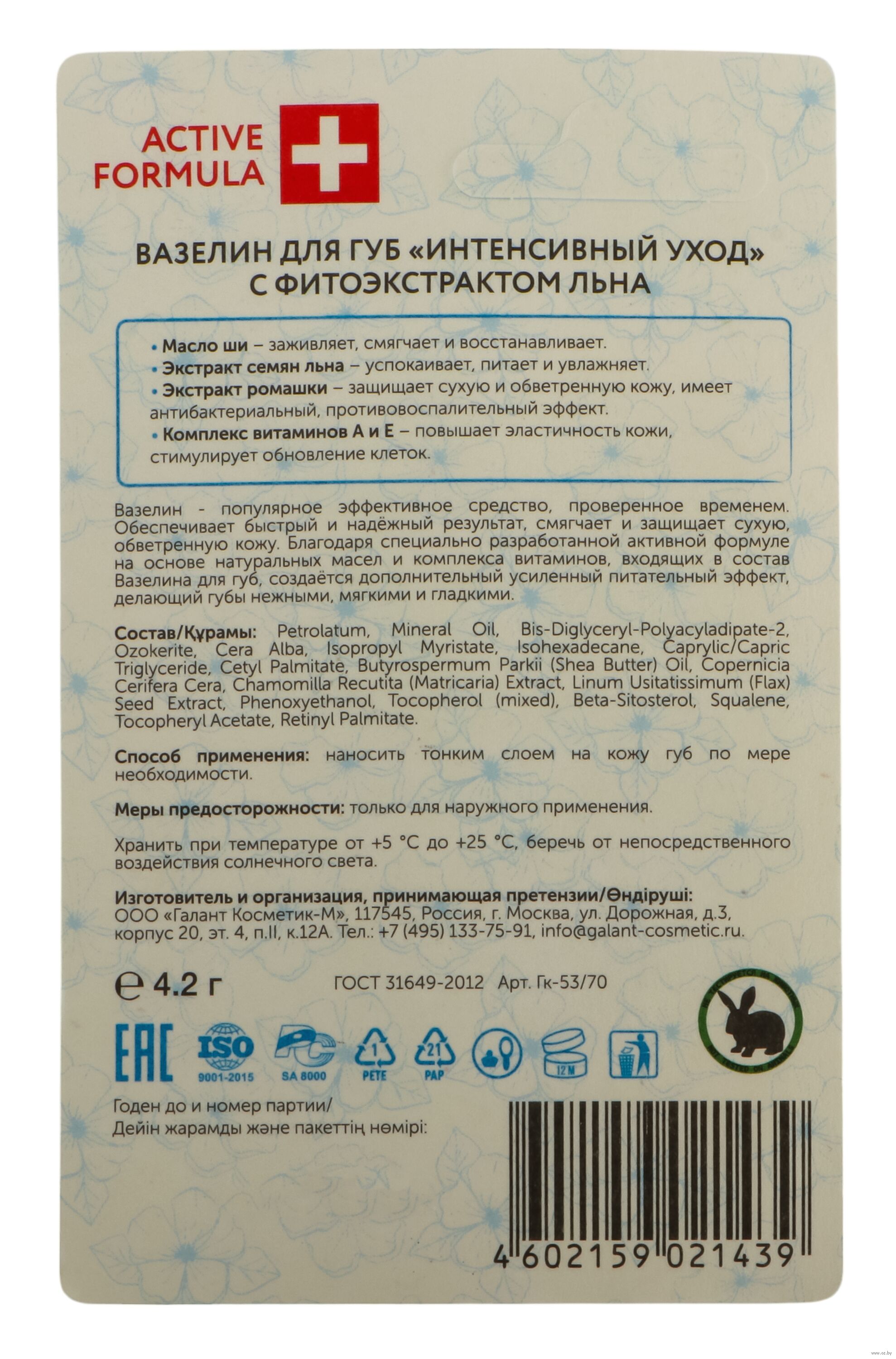 Вазелин для губ "Интенсивный уход с фитоэкстрактом льна"