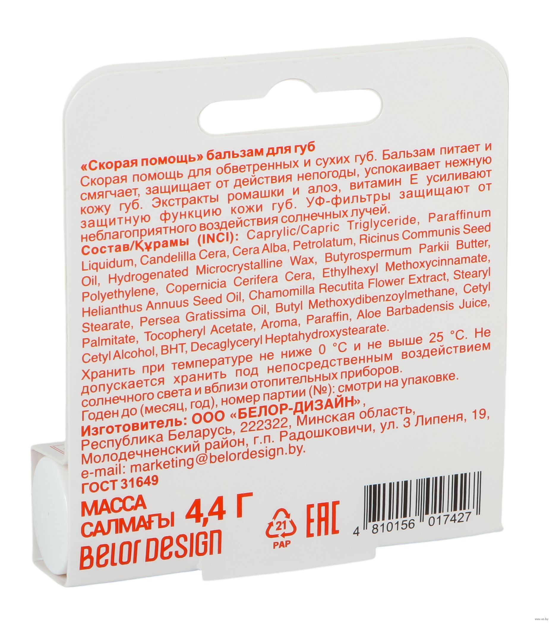 Бальзам питает и смягчает, защищает от действия непогоды, успокаивает нежную кожу губ.