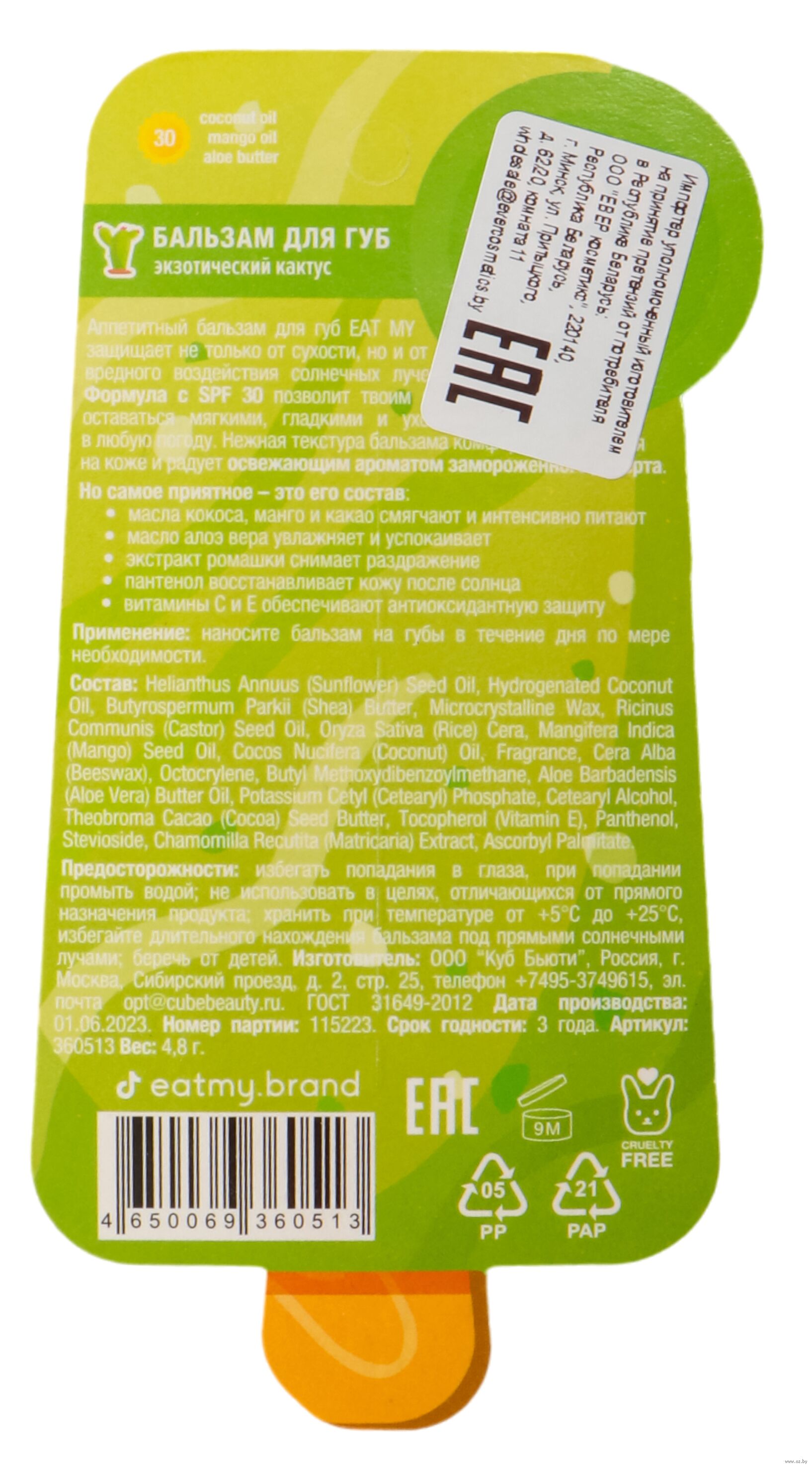 | Изготовитель | ООО "Куб Бьюти", Россия, г. Москва, Сибирский проезд, д. 2, стр. 25 |