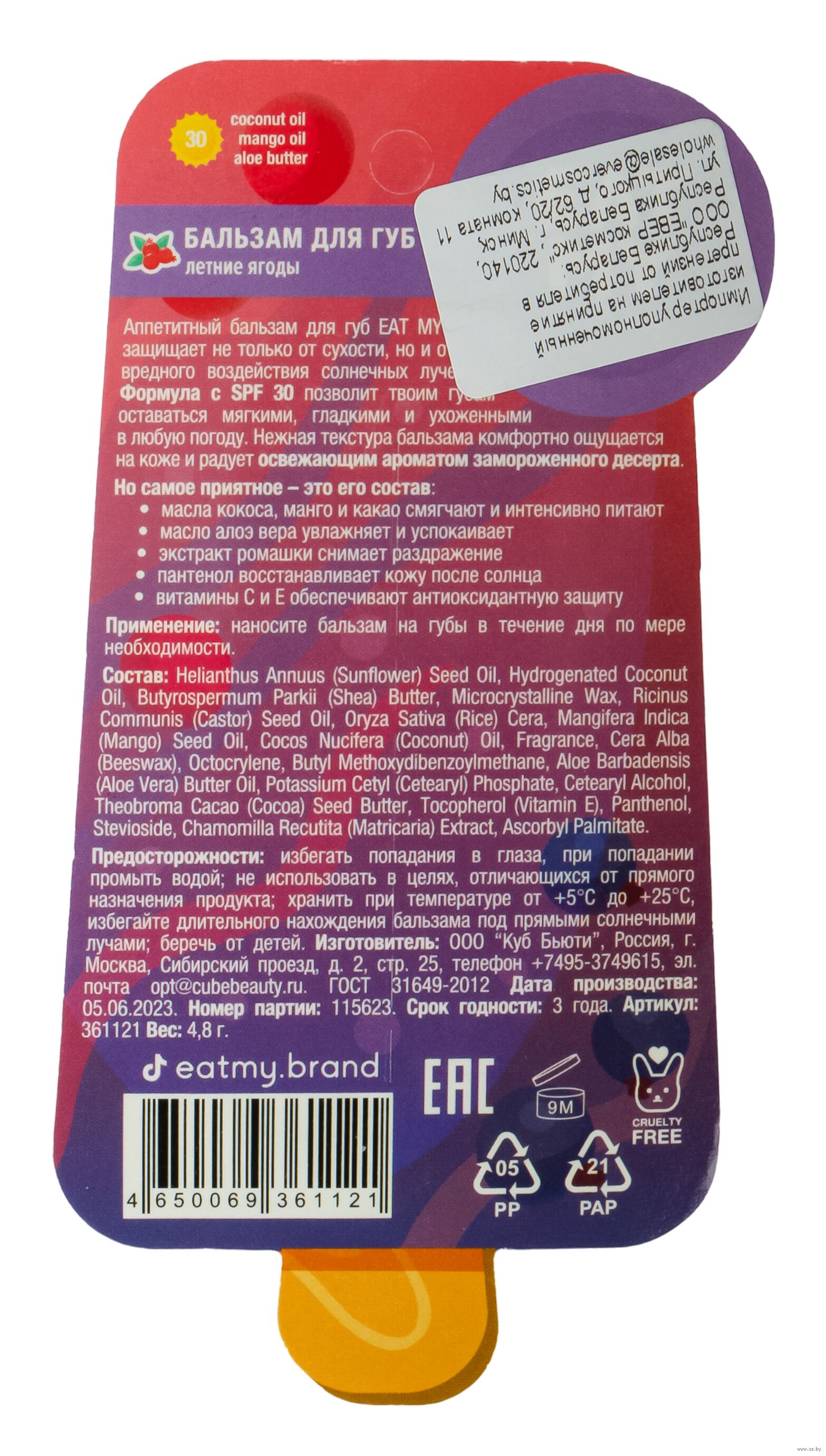 | Изготовитель | ООО "Куб Бьюти", Россия, г. Москва, Сибирский проезд, д. 2, стр. 25 |
