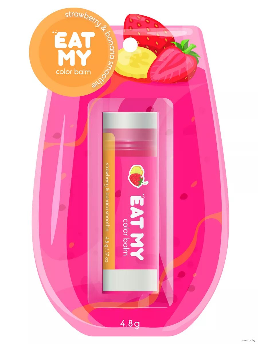 Оттеночный бальзам с нежным ароматом клубники и банана сделает твои губы максимально сочными: он обеспечивает бережный уход, придаёт нежный оттенок и лёгкий блеск.