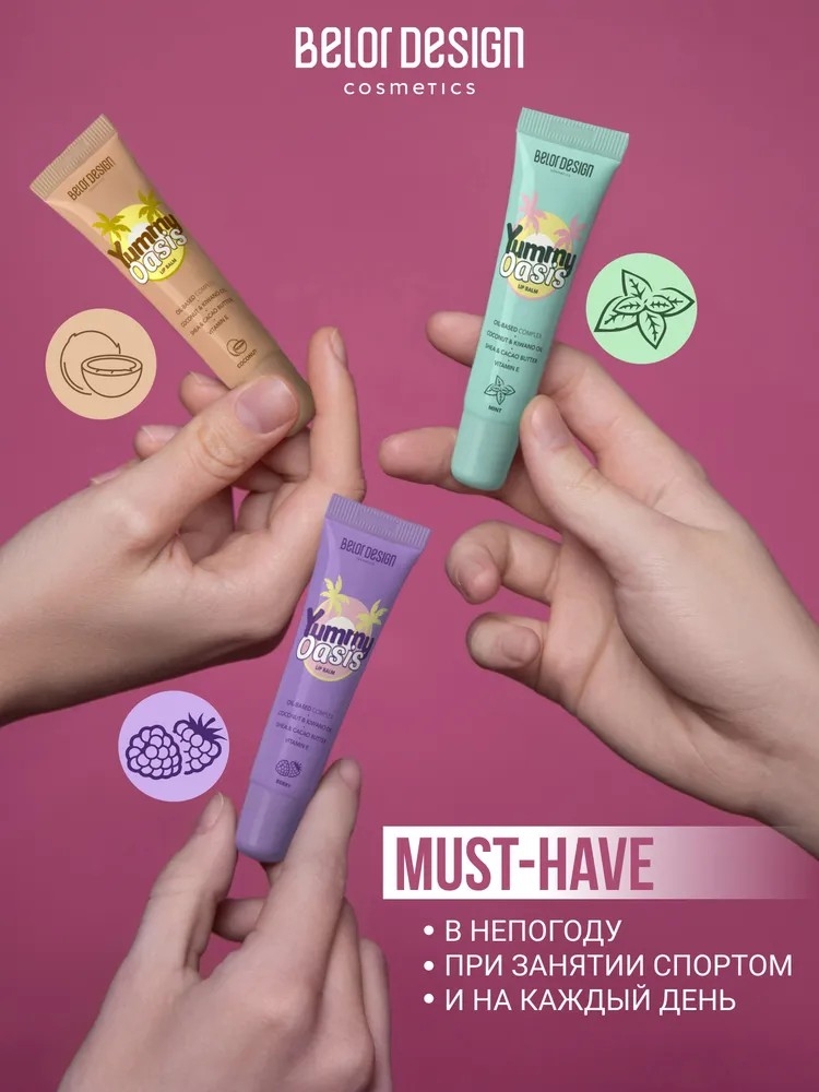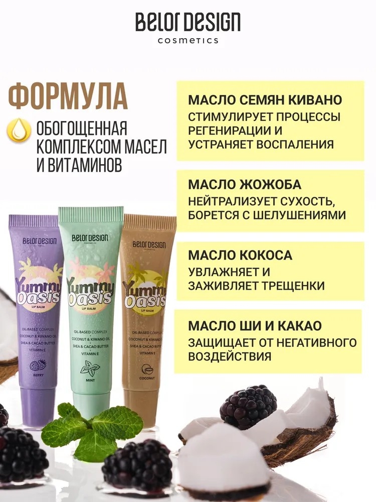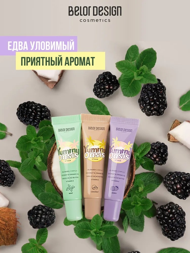 "Yummy Oasis Mint" с едва уловимым ароматом мятных конфет (в составе Эфирное масло мяты) , который нельзя съесть, но можно нанести на губы подходит и для мужчин.