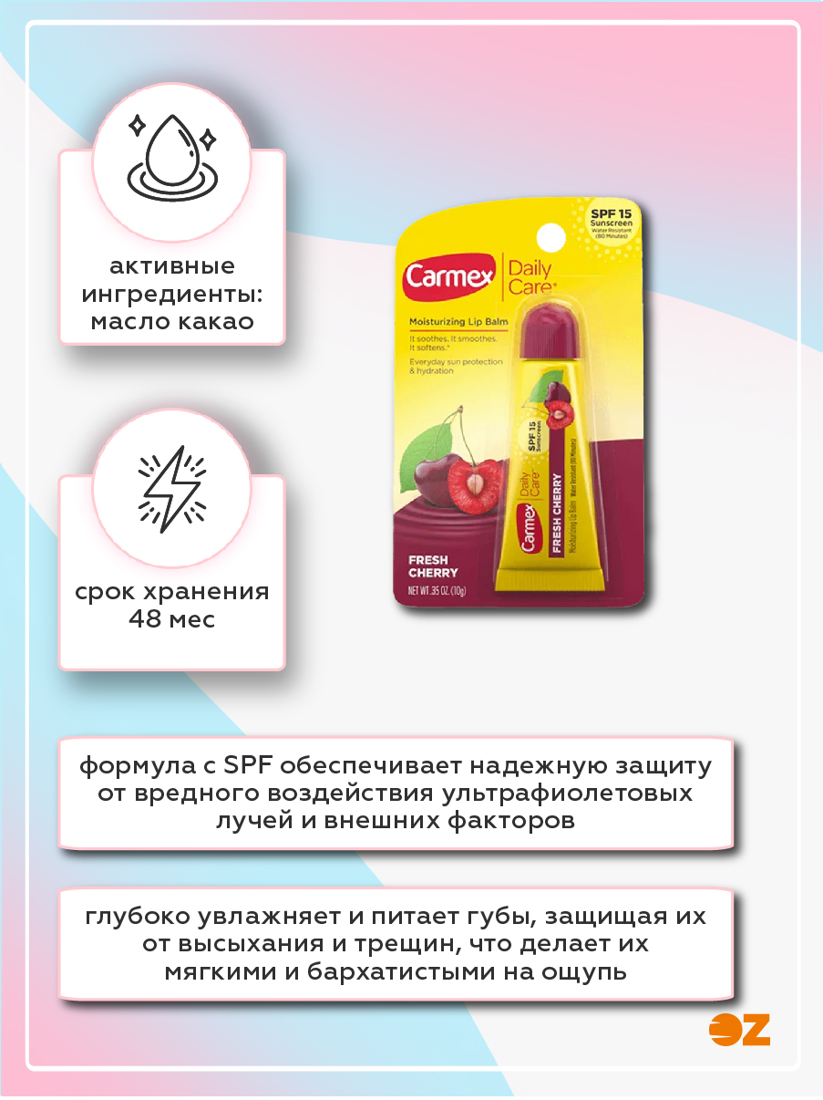Бальзам Carmex с ароматом вишни идеально подходит для использования в повседневной жизни и на работе.