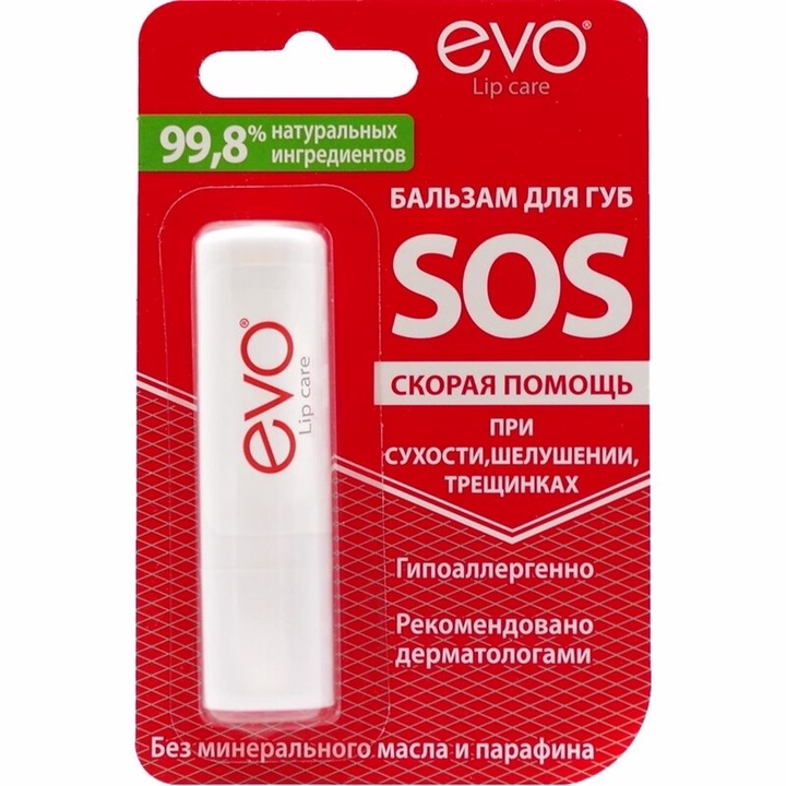 Бальзам EVO SOS восстанавливает сухую, раздраженную, шелушащуюся кожу губ. Благотворно влияет на состояние кожи красной каймы губ, заживление микротрещин, обладает успокаивающем действием.