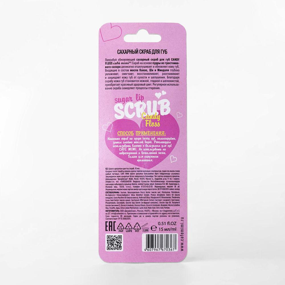 Скраб на основе пудры из тростникового сахара деликатно отшелушивает и обновляет кожу губ. Входящие в состав масла Какао, Ши и Миндаля глубоко увлажняют, смягчают, восстанавливают, разглаживают и защищают кожу губ от сухости и шелушения.