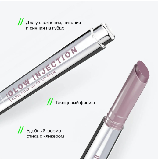 Помада-бальзам "Glow Injection" с тающей на губах инновационной кремовой текстурой Smart Guard для питания, увлажнения и сияющего глянцевого покрытия.