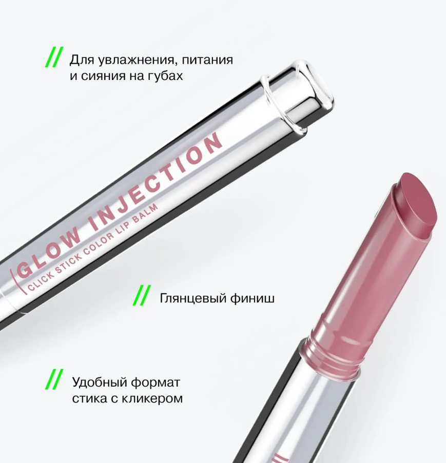 Помада-бальзам "Glow Injection" с тающей на губах инновационной кремовой текстурой Smart Guard для питания, увлажнения и сияющего глянцевого покрытия.