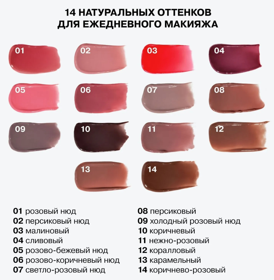 Инновационный продукт-гибрид, который делает их невероятно глянцевыми, притягательными, гладкими и визуально более объемными. Универсальные оттенки с сияющим финишем подходят для любого образа и настроения, а невесомая текстура позволяет добиться желаемого эффекта – от легкого полупрозрачного покрытия до более интенсивного и ослепительного.