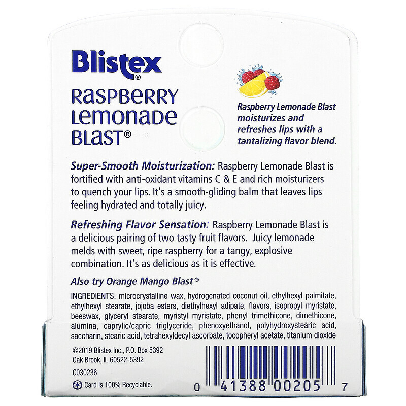 Увлажняющий бальзам для губ "Raspberry Lemonade Blast" увлажняет и освежает губы дразнящей смесью ароматов.