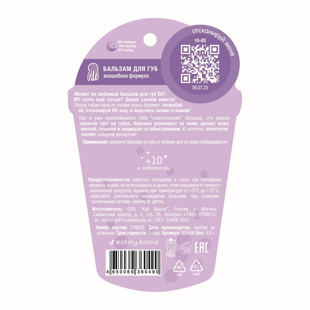 | Изготовитель | ООО "Куб Бьюти", Россия, г. Москва, Сибирский проезд, д. 2, стр. 25 |