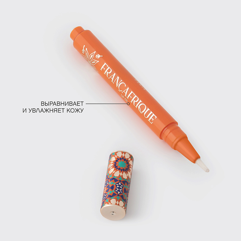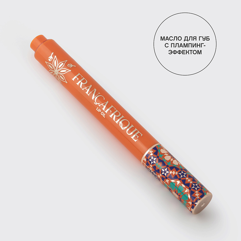 Масло для губ украшено орнаментом, который словно живет своей жизнью, дышит, перенося в волшебный мир тайн богатой африканской культуры, где загадочные узоры будто шепчут о древних обычаях и секретах.