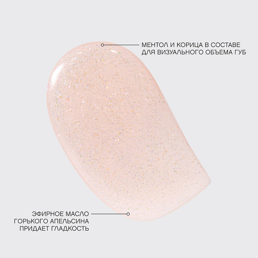 Масло с выравнивающей и увлажняющей губы текстурой создает насыщенный плампинг-эффект благодаря разогревающим компонентам в составе – ментолу и корице. Также продукт содержит эфирное масло горького апельсина, которое придает гладкость.
