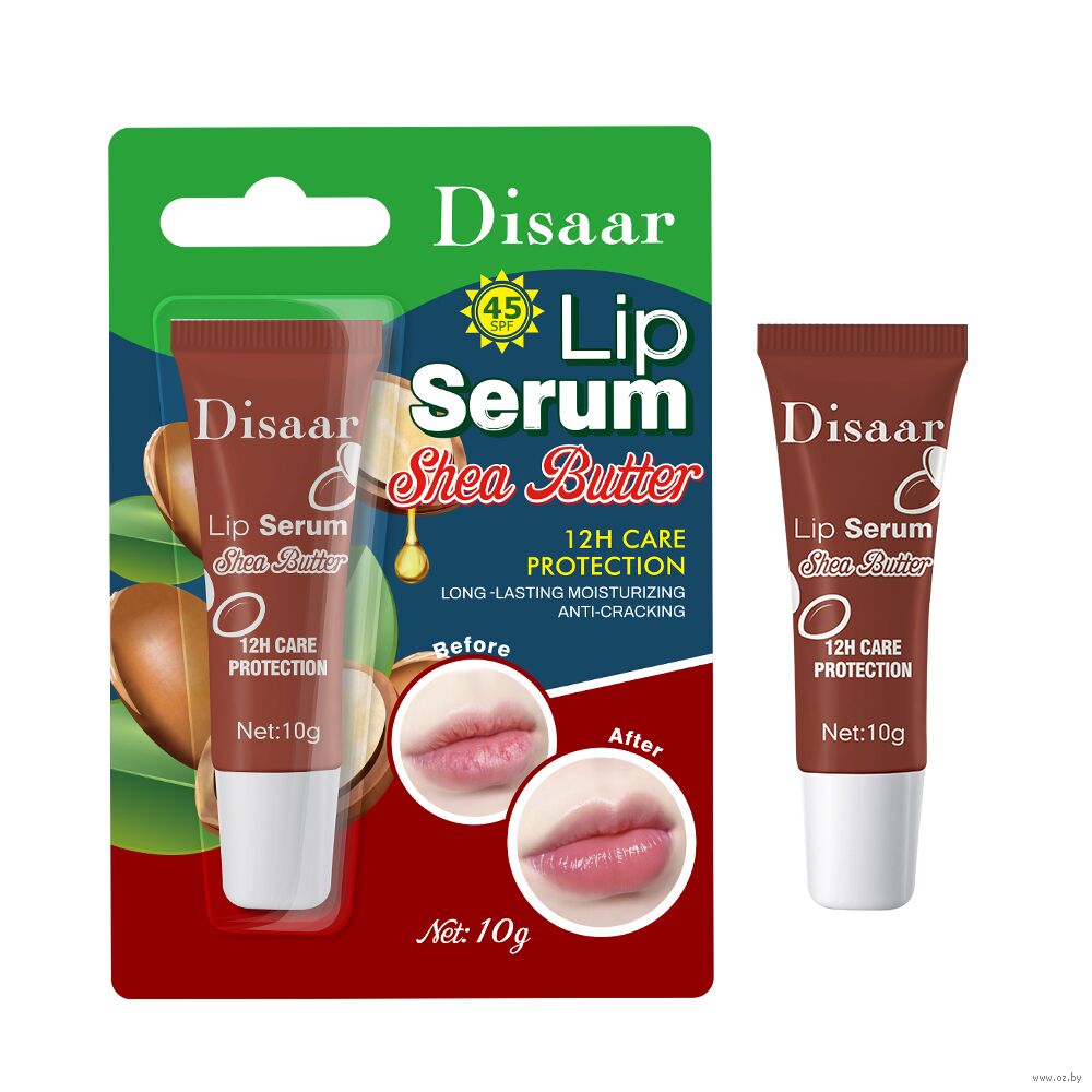 Солнцезащитная сыворотка для губ на основе витамина Е, масла ши и кокоса позволяет в кратчайшие сроки напитать кожу необходимым количеством влаги, устранить сухость и справиться с шелушениями. Средство интенсивно увлажняет и питает сухую кожу губ, укрепляет защитный барьер, ускоряет заживление трещинок, удерживает влагу и дарит красивый эффект «стеклянных губ». Сыворотка имеет фактор защиты от ультрафиолетового излучения SPF 45.