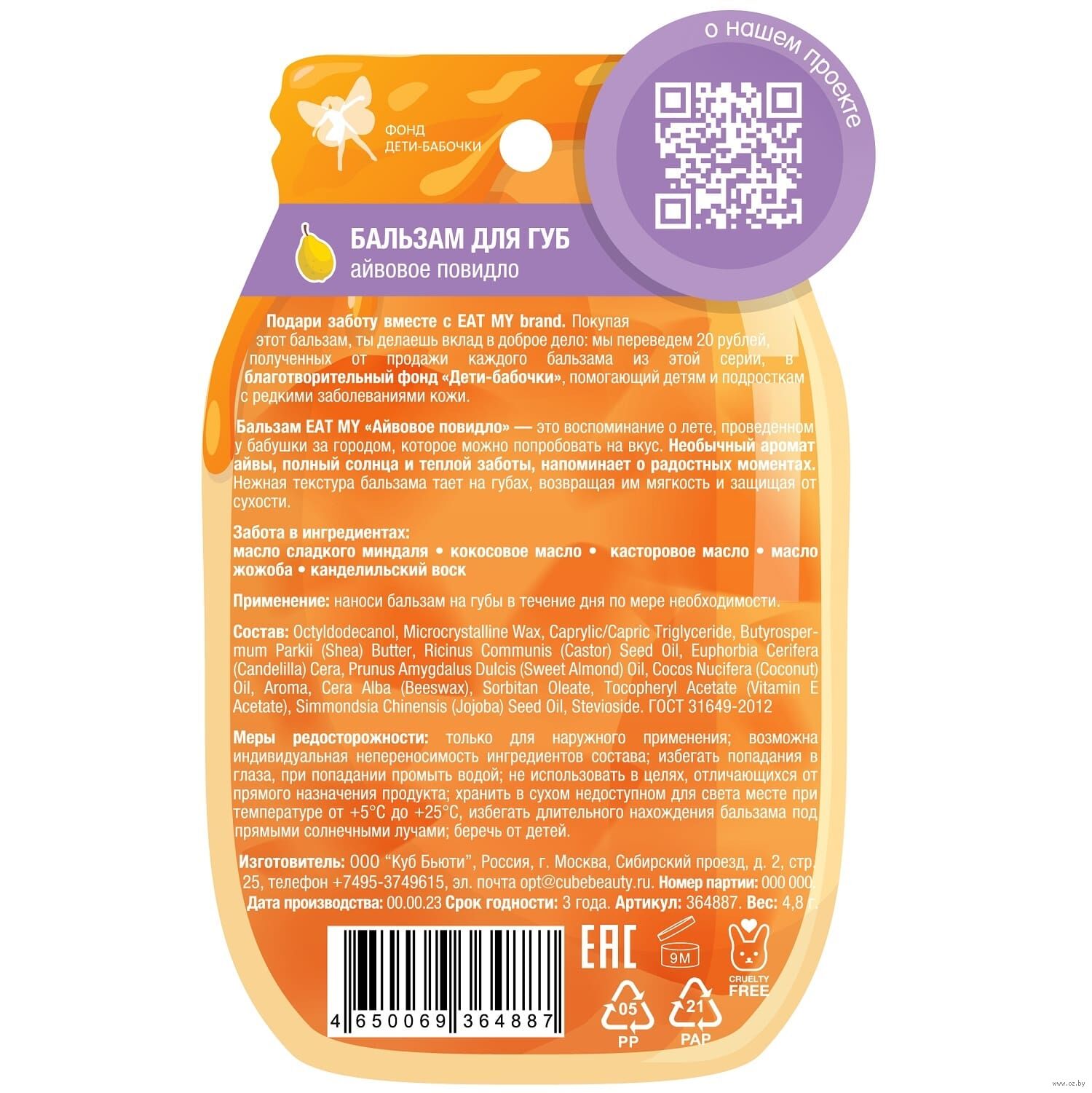 Наносите бальзам на губы в течение дня по мере необходимости.Состав