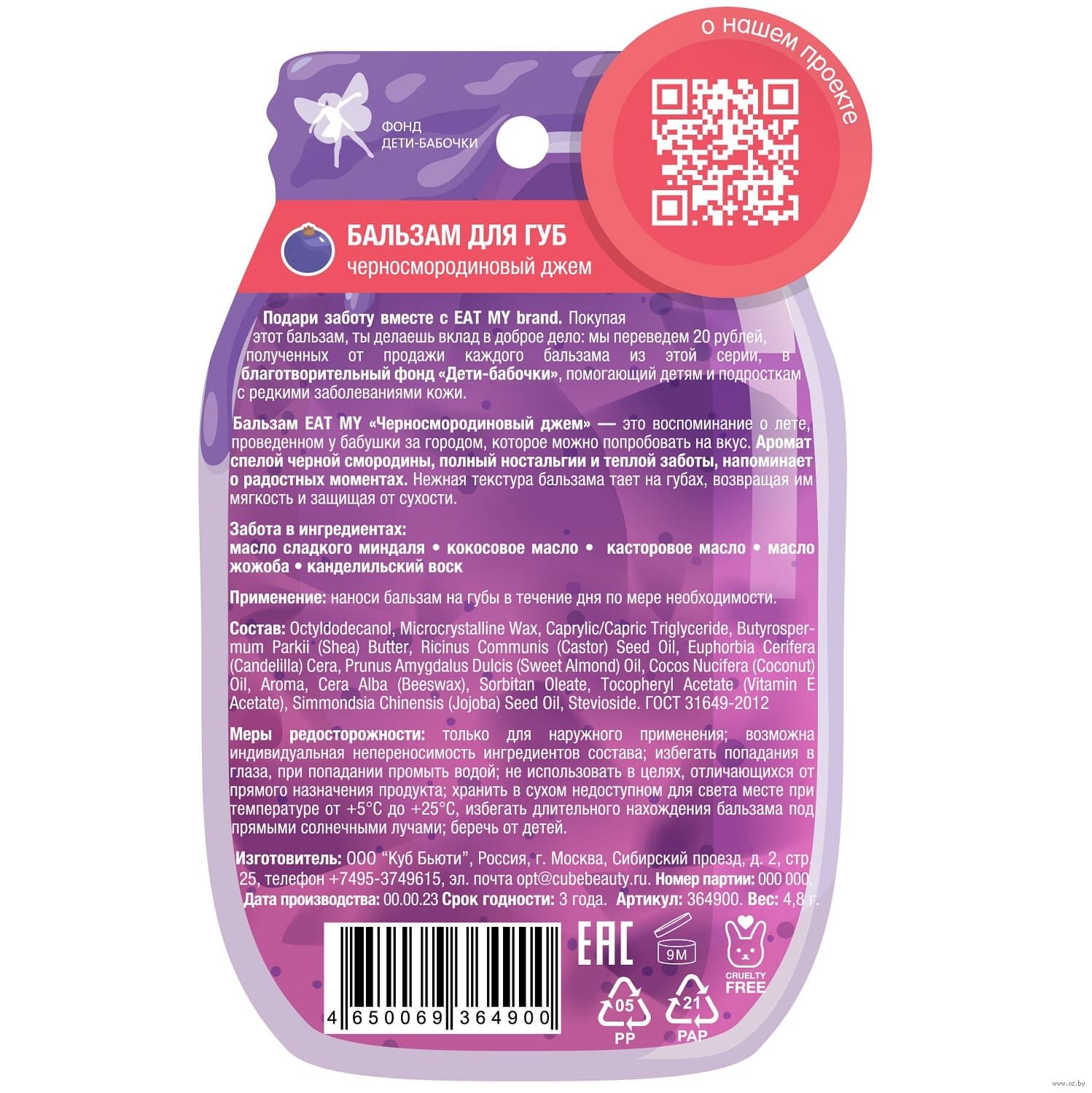 Бальзам "Черносмородиновый джем" – это воспоминание о лете, проведенном у бабушки за городом, которое можно попробовать на вкус. Аромат спелой черной смородины, полный ностальгии и теплой заботы, напоминает о радостных моментах. Нежная текстура бальзама тает на губах, возвращая им мягкость и защищая от сухости.
