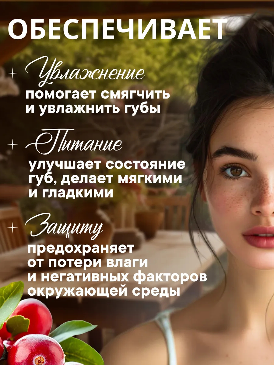 Бальзам "Брусничный морс" – это воспоминание о лете, проведенном у бабушки за городом, которое можно попробовать на вкус. Легкий аромат брусники, полный нежности и теплой заботы, напоминает о радостных моментах. Нежная текстура бальзама тает на губах, возвращая им мягкость и защищая от сухости.