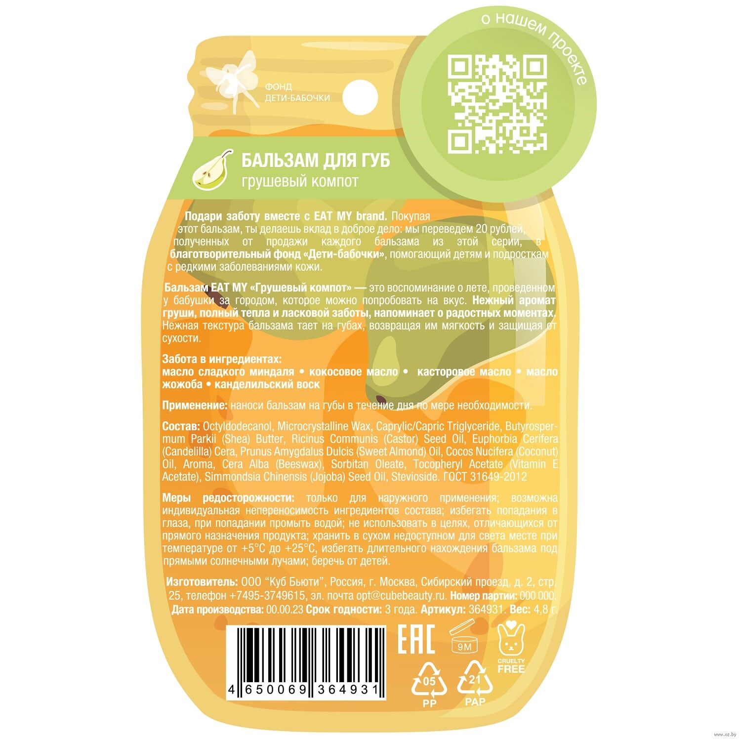 Наносите бальзам на губы в течение дня по мере необходимости.Состав