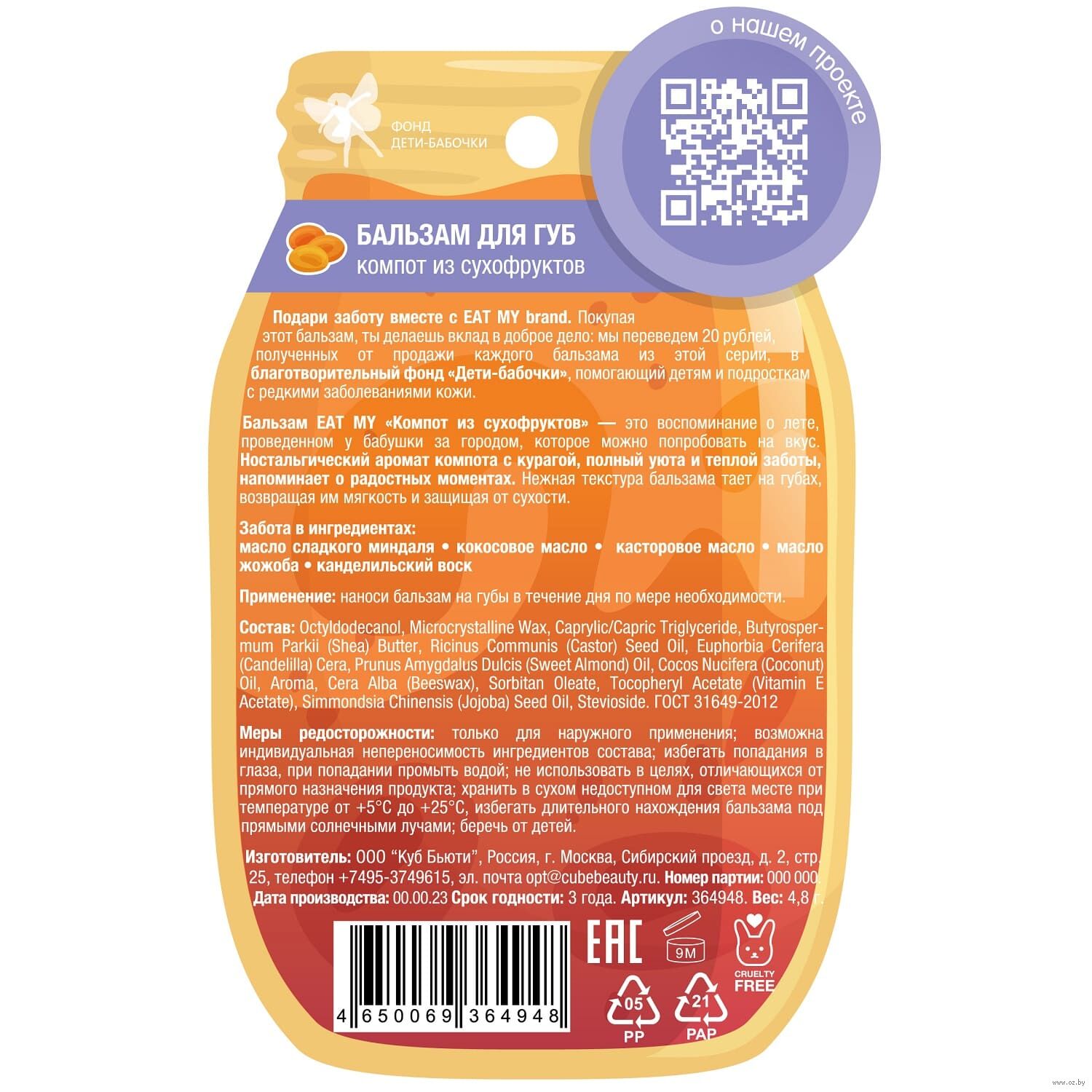 Наносите бальзам на губы в течение дня по мере необходимости.Состав