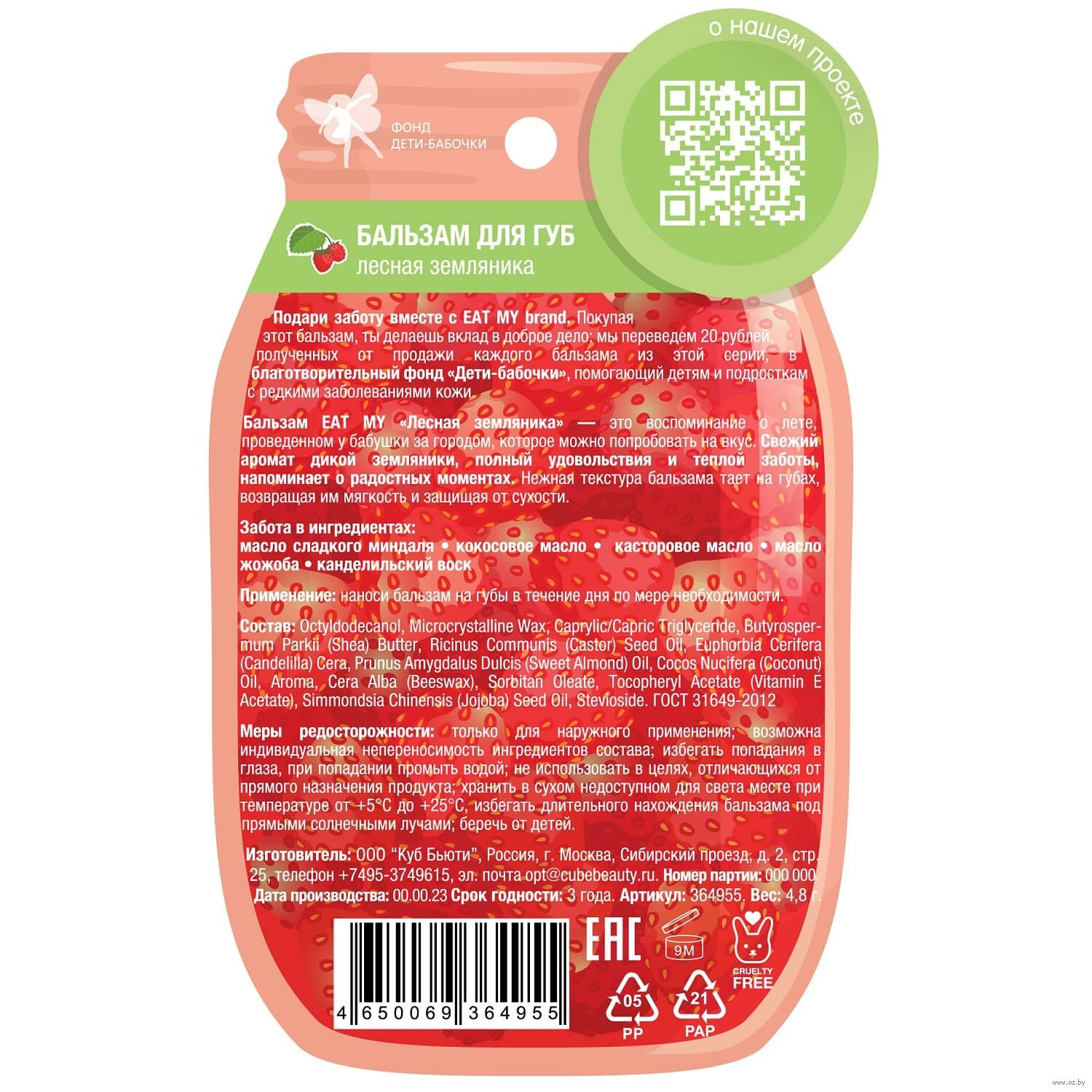 Наносите бальзам на губы в течение дня по мере необходимости.Состав