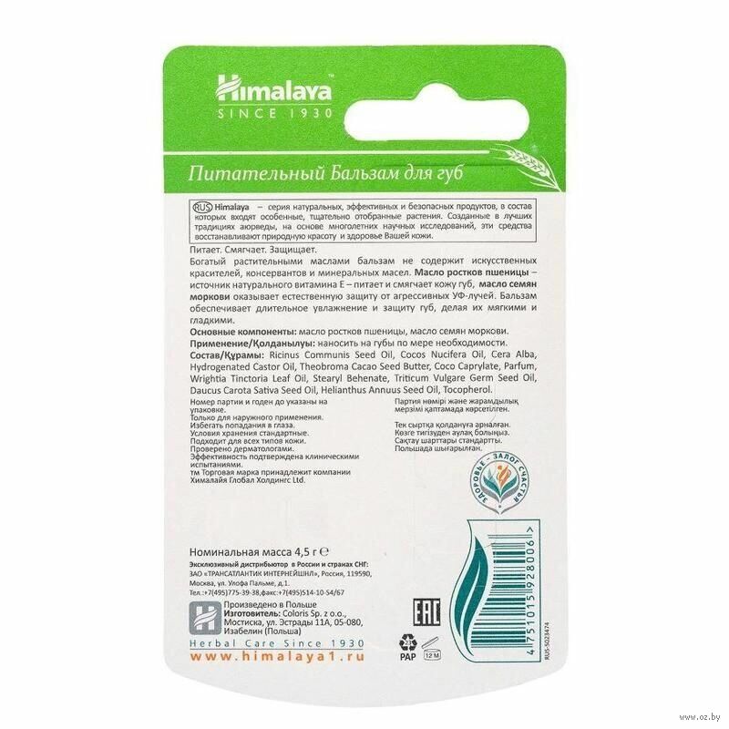 Бальзам для губ "Питательный с маслом ростков пшеницы" не содержит искусственных красителей, консервантов и минеральных масел.