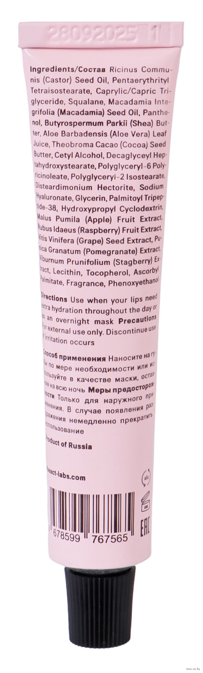| Активные ингредиенты | Гиалуроновая кислота, касторовое масло, масло какао, масло макадамии, масло ши, пантенол (витамин в5), экстракт алоэ |