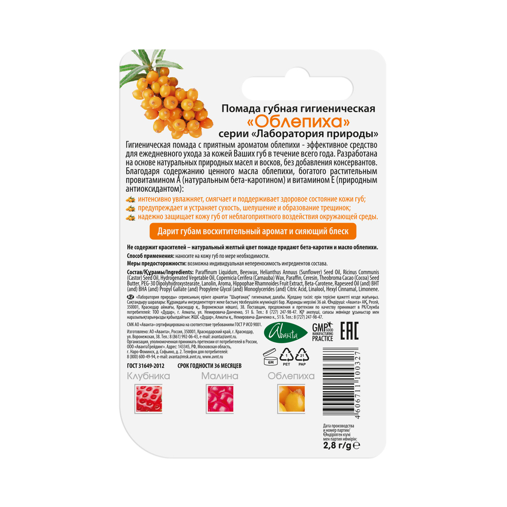 Paraffinum Liquidum, Beeswax, Ricinus Communis (Castor) Seed Oil, Hydrogenated Vegetable Oil, Helianthus Annuus (Sunflower) Seed Oil, Copernicia Cerifera (Carnauba) Wax, Paraffin, Theobroma Cacao Seed Butter, Lanolin, Helianthus Annuus (Sunflower) Seed Oil (and) Beta-Carotene, Ceresin, Аroma, Hippophae Rhamnoides Fruit Extract, Rapeseed Oil (and) BHT (and) BHA (and) Propyl Gallate (and) Propylene Glycol (and) Monoglycerides (and) Citric Acid.Мы используем файлы cookie для обеспечения удобства работы с сайтом и его контакта с пользователем.