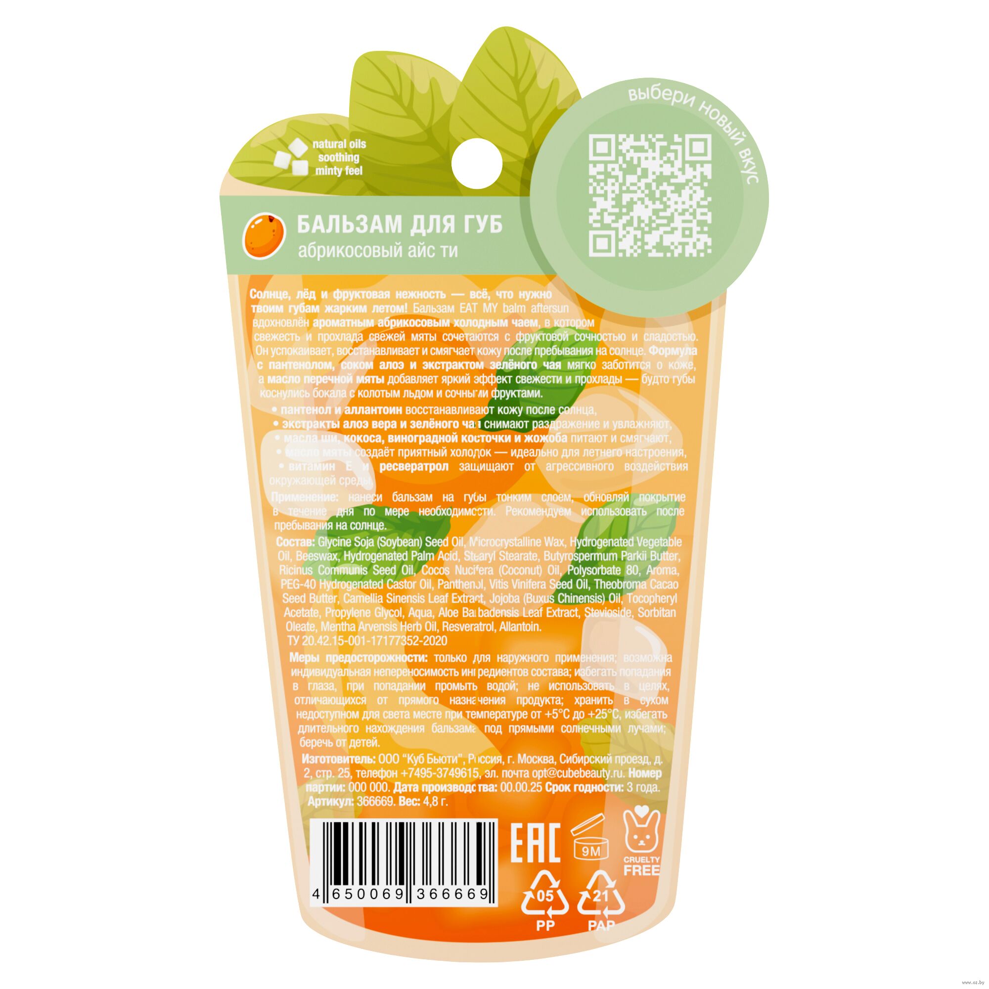 Солнце, лёд и фруктовая нежность – всё, что нужно твоим губам жарким летом. Бальзам EAT MY balm aftersun вдохновлён ароматным абрикосовым холодным чаем, в котором свежесть и прохлада свежей мяты сочетаются с фруктовой сочностью и сладостью. Он успокаивает, восстанавливает и смягчает кожу после пребывания на солнце.