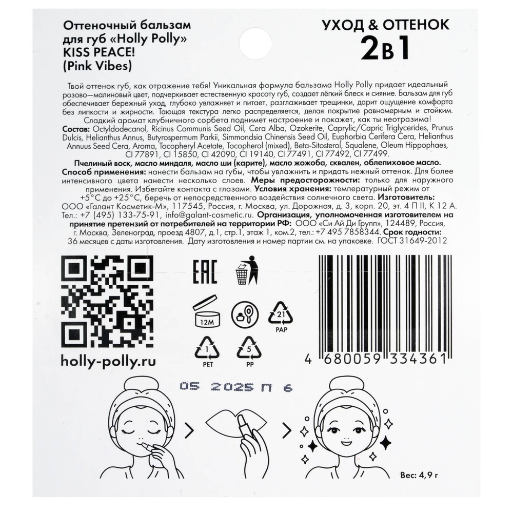 Твой оттенок губ, как отражение тебя! Уникальная формула бальзама Holly Polly придает идеальный розово-малиновый цвет, подчеркивает естественную красоту губ, создает лёгкий блеск и сияние.
