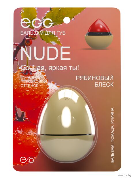 Бальзам для губ Egg Nude увлажняет, питает, устраняет сухость и стянутость. Защищает от обветривания и солнечных лучей, разглаживает, придает ухоженный вид и легкий блеск.