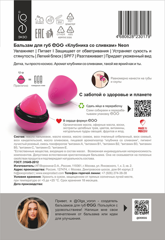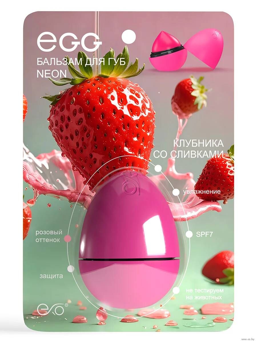 Подарите губам сладкую нежность с бальзамом-блеском для губ Neon Egg клубника со сливками.