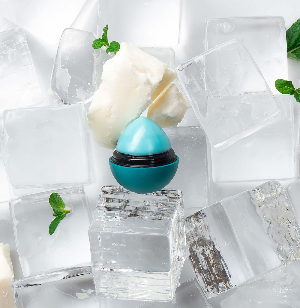 Масло ши, масло кокоса, масло сладкого миндаля, воск пчелиный отбеленный, воск соевый, воск канделильский, масло оливковое, ароматизатор пищевой “ментол”, смесь токоферолов, ароматизатор пищевой “мята”, пигмент лучистый белый, пигмент бирюза, *витамин А, *витамин В1, *витамин В2, *витамин В3, *витамин В5, *витамин С, *витамин D, *витамин E. *естественные вещества, входящие в состав масел.