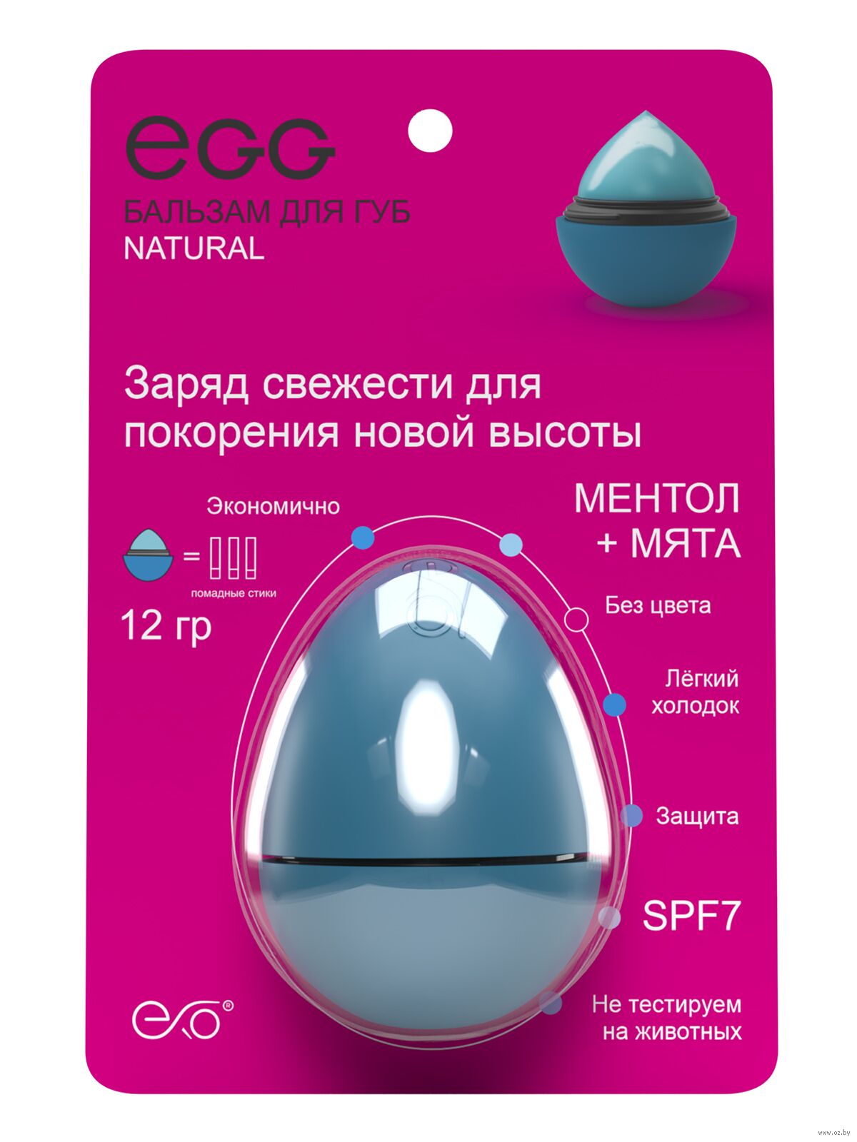 Бальзам для губ Egg Natural увлажняет и питает. Защищает от обветривания, устраняет сухость и стянутость.