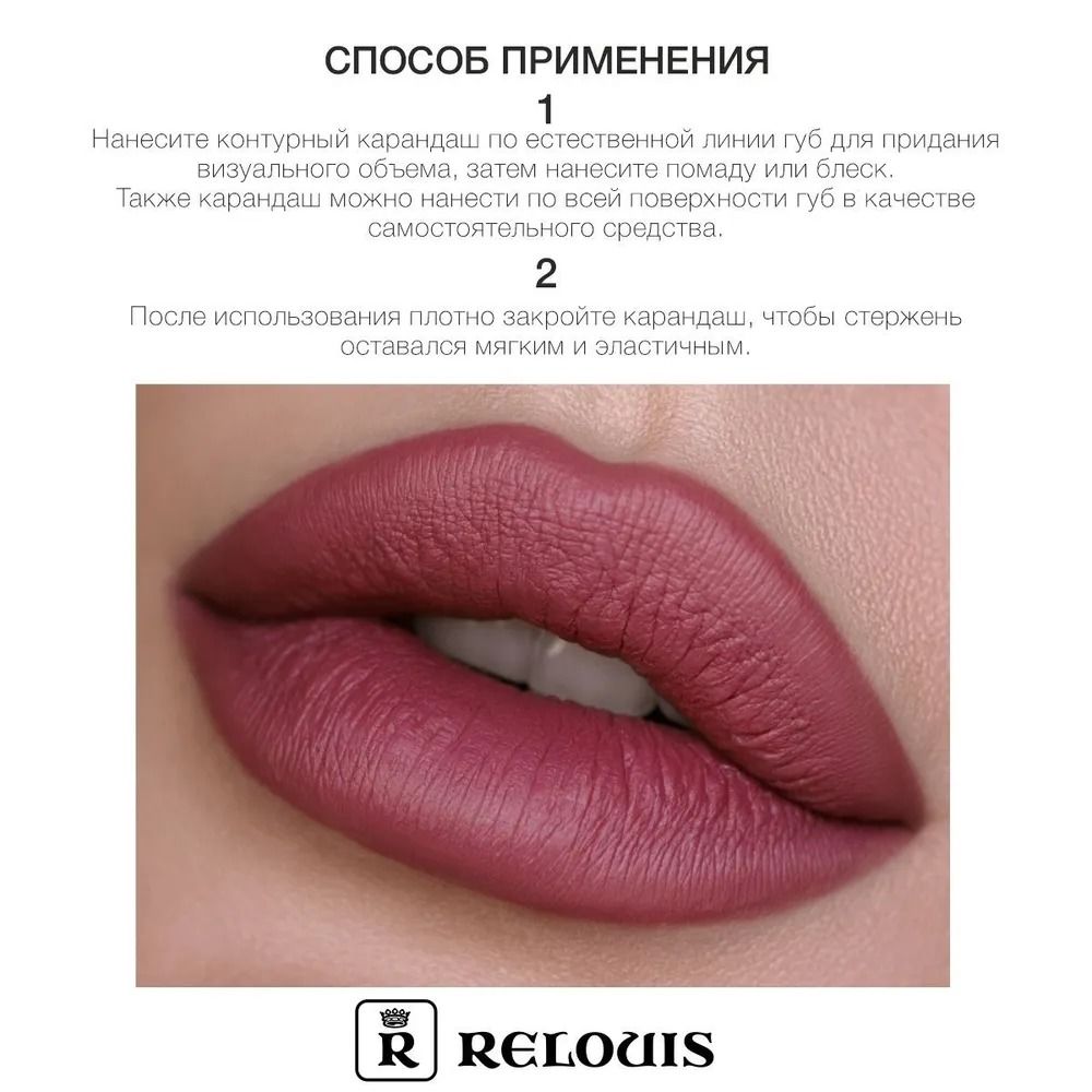 Нанесите контурный карандаш по естественной линии губ для придания визуального объема, затем нанесите помаду или блеск. Также карандаш можно нанести по всей поверхности губ в качестве самостоятельного средства.Состав