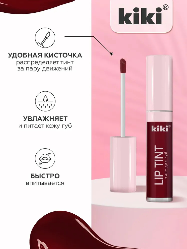 Оттеночный тинт для губ KIKI LIP TINT на водной основе, имеет яркий естественный оттенок и матовый финиш. После нанесения быстро впитывается, не оставляя ощущения липкости или дискомфорта на губах.