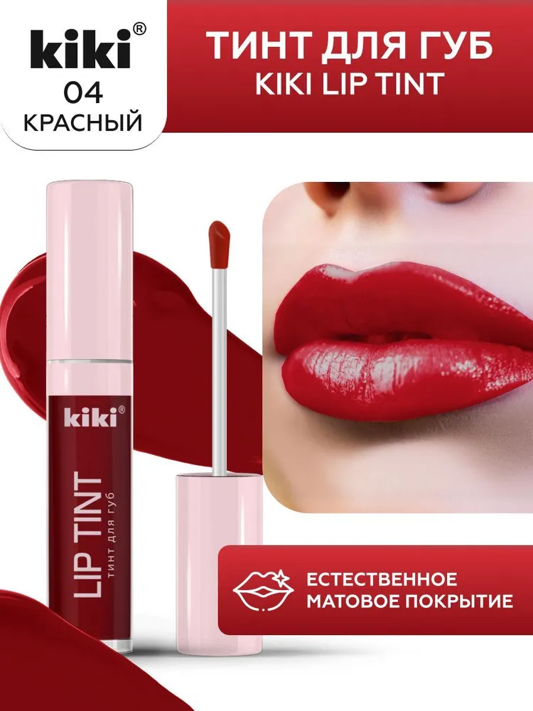 Оттеночный тинт для губ KIKI LIP TINT на водной основе, имеет яркий естественный оттенок и матовый финиш. После нанесения быстро впитывается, не оставляя ощущения липкости или дискомфорта на губах.