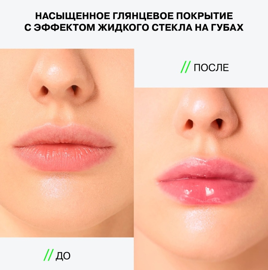 Гель-блеск не только гарантирует легкое и равномерное нанесение, но и обладает свойствами, благодаря которым кожа губ остается увлажненной на протяжении всего дня. Продукт упакован в футуристичный флакон обтекаемой формы и имеет аппликатор с длинными и мягкими ворсинками, который помогает идеально ровно распределить блеск по губам.