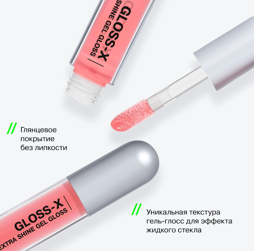 Гель-блеск для идеального глянцевого эффекта на губах. В широкой палитре есть 10 оттенков от полупрозрачных для естественного и нежного образа до плотных ярких цветов – выберите свой Gloss-X для макияжа с насыщенным глянцевым покрытием и эффектом жидкого стекла на губах.