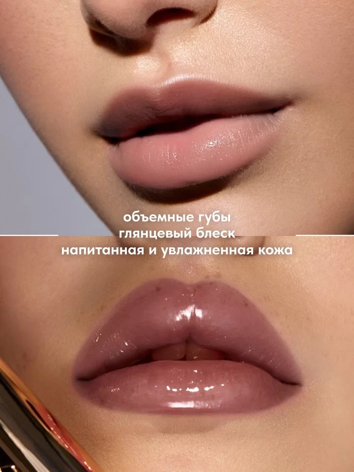 Плотная комфортная текстура плампера равномерно наносится и выравнивает рельеф губ, не растекаясь за контур, не оставляя ощущение липкости или пленки. Плампер представлен в шести глянцевых оттенках: прозрачном, теплых и холодных розовых и бежевых тонах.