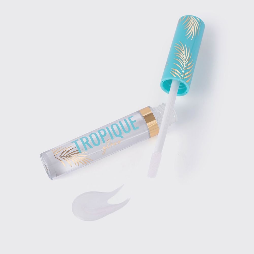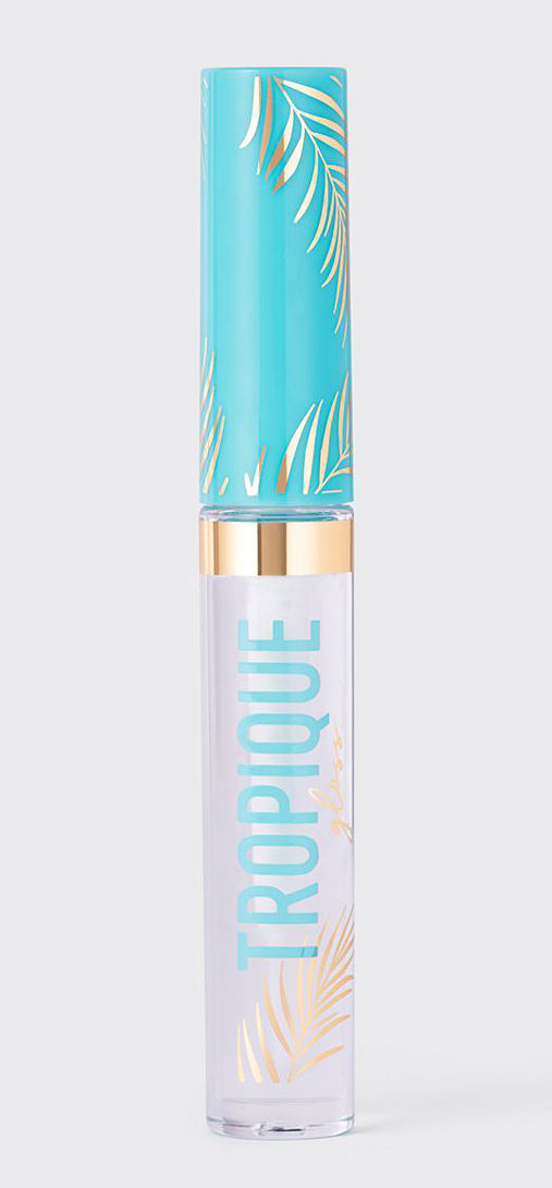 Блеск "Tropique Gloss" в стильной упаковке с золотыми пальмовыми листьями – лето, которое всегда с тобой!