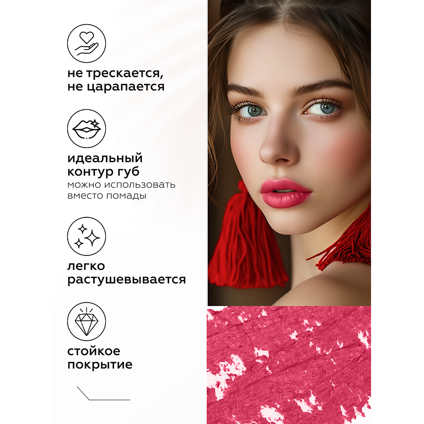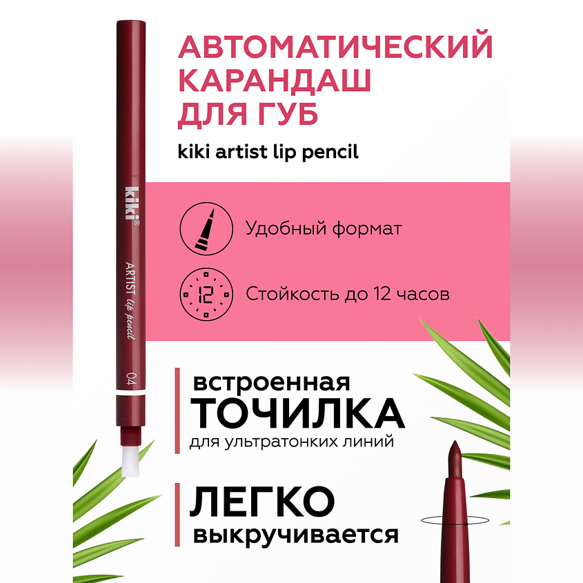 Карандаш для губ автоматический KIKI ARTIST LIP моментально фиксируется, не размазывается, создает идеальный макияж губ в одно касание. Карандаш имеет кремовую текстуру, прекрасно тушуется и позволяет регулировать интенсивность оттенка.
