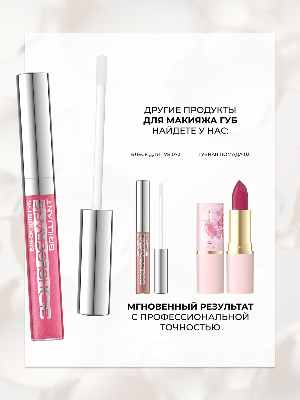 Коллекция блесков для губ 3D Holografic Brilliant предназначена для женщин, предпочитающих нежное цветовое покрытие с переливающимся эффектом. 12 привлекательных оттенков представляют собой сочетание разноцветных жемчужин, создающих необыкновенный голографический эффект.