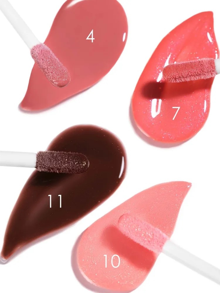 Удобный маленький аппликатор равномерно распределяет блеск по губам.