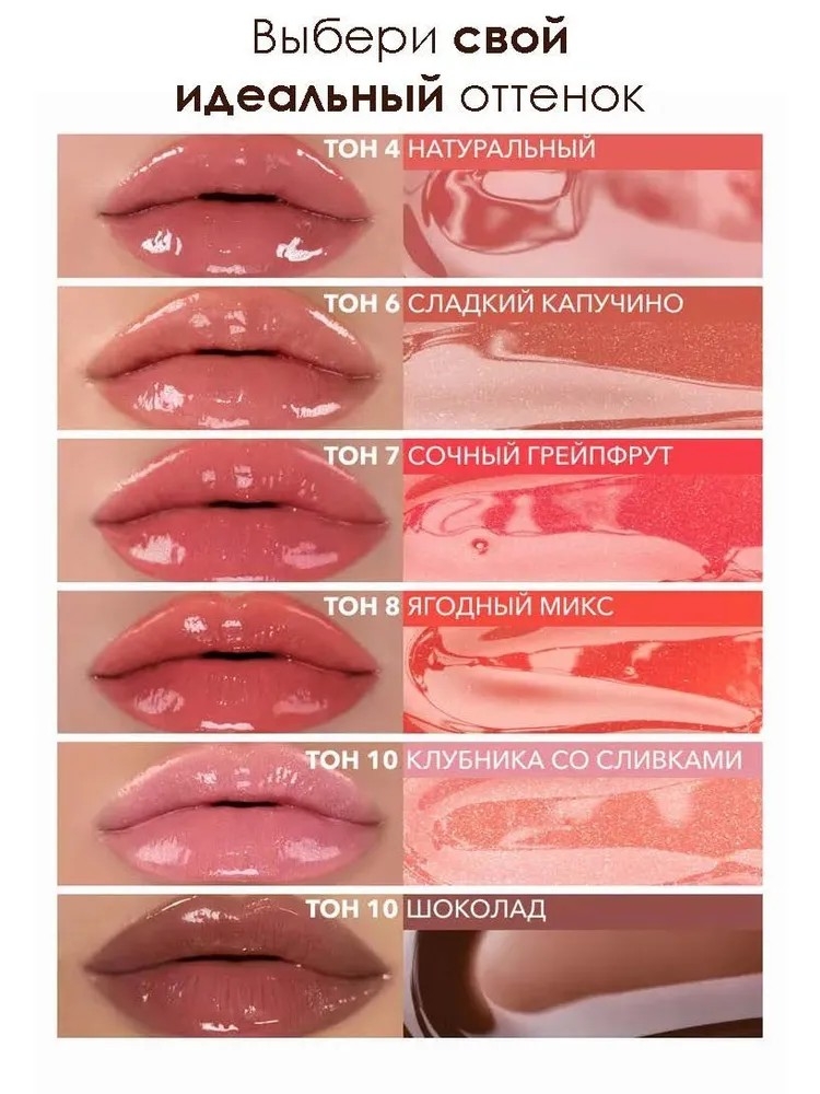 Нанесите необходимое количество блеска на поверхность губ и равномерно распределите.Состав