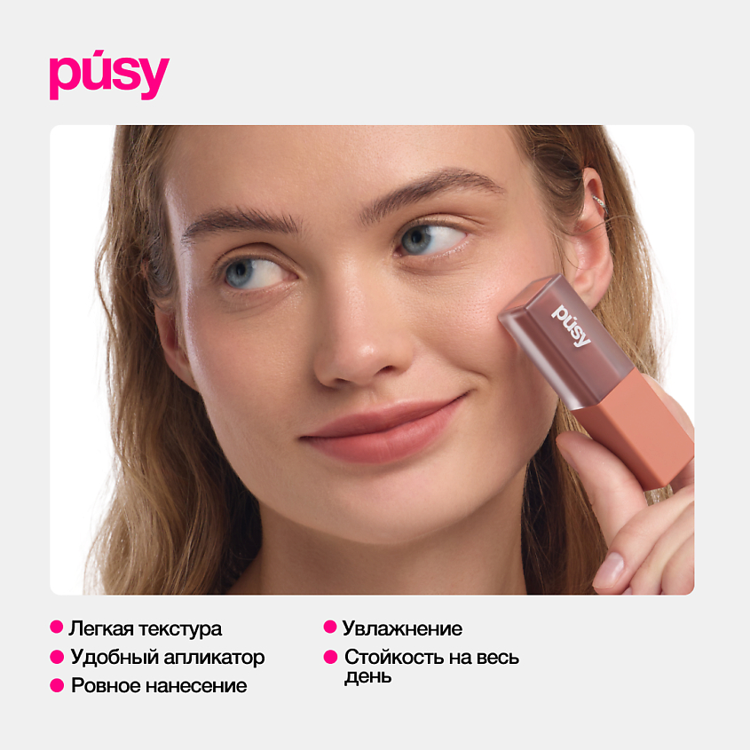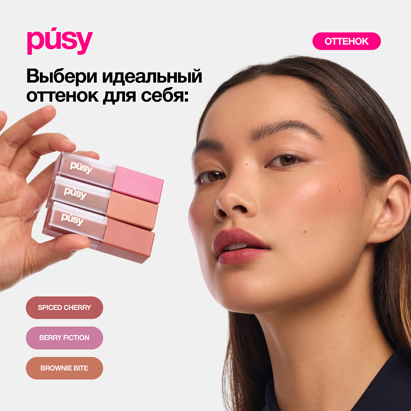 Тинт Pusy – это матовый финиш и стойкость в одном флаконе. Идеальная альтернатива традиционной матовой помаде.