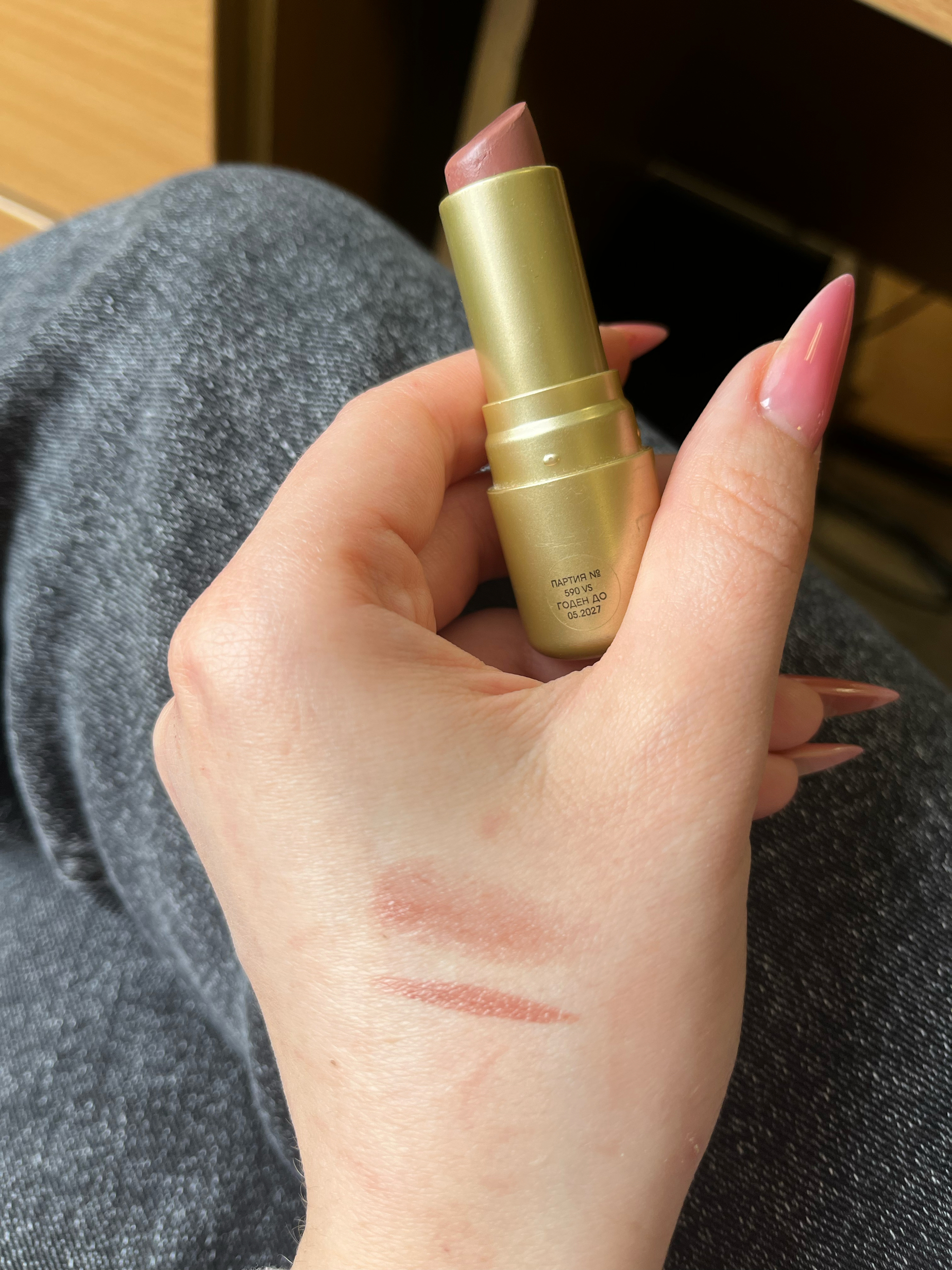 Ну какой же шикарный бальзам! Благородный коричневатый цвет, усиливающийся наслаиванием. Средняя степень увлажнения. Ненавязчивый сладковатый аромат. Глянцевый эффект при нанесении, как от блеска. Но со временем он пропадает, а оттенок нежной вуалью остается лежать на губах. Несколько раз, забывая о нем, походила к зеркалу и восхищалась внешним видом губ: такие напитанные, пухленькие, здорового оттенка) Один из тех продуктов, которые кладешь в карман или сумочку, и используешь ежедневно. Еще один несомненный плюс, что нанести бальзам можно даже без зеркала, текстура не позволит убежать контуру губ в стартосферу) Сходит незаметно, не оставляя коварной полосы у кромки. Отлично вписывается в любой образ, даже когда это вариант совсем без макияжа. Однозначно буду повторять. Жду оттенки 6 и 7)