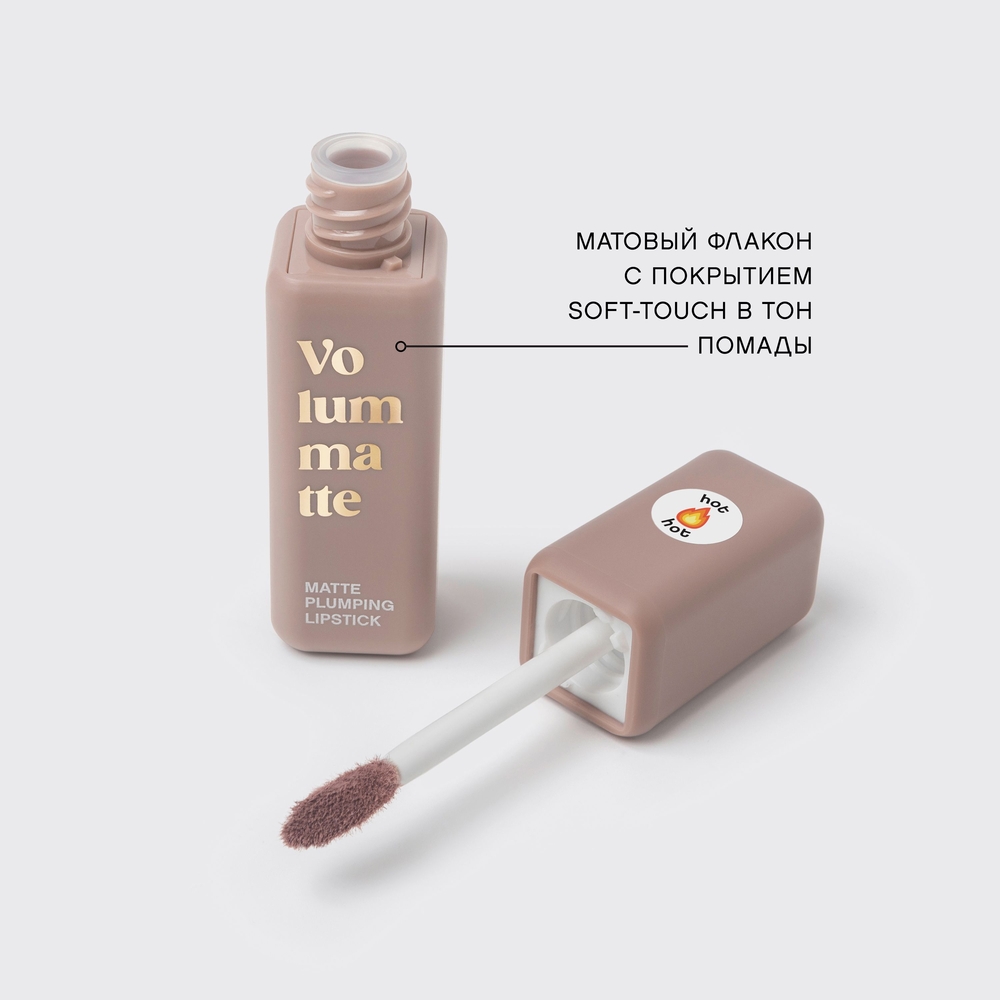 Volummatte – стойкая жидкая помада с матовым финишем и согревающим плампинг-эффектом в восьми оттенках от классического нюдового до насыщенного винного.