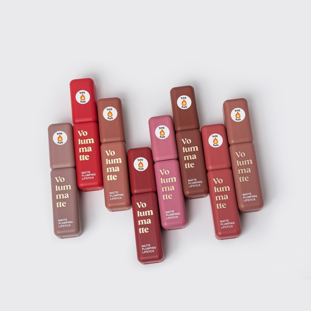 Volummatte – стойкая жидкая помада с матовым финишем и согревающим плампинг-эффектом в восьми оттенках от классического нюдового до насыщенного винного.